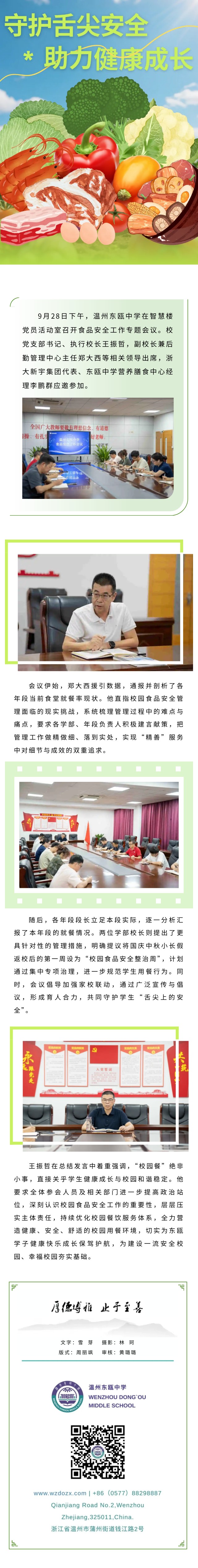 守护舌尖安全 助力健康成长 | 温州东瓯中学专题部署校园食品安全提质行动