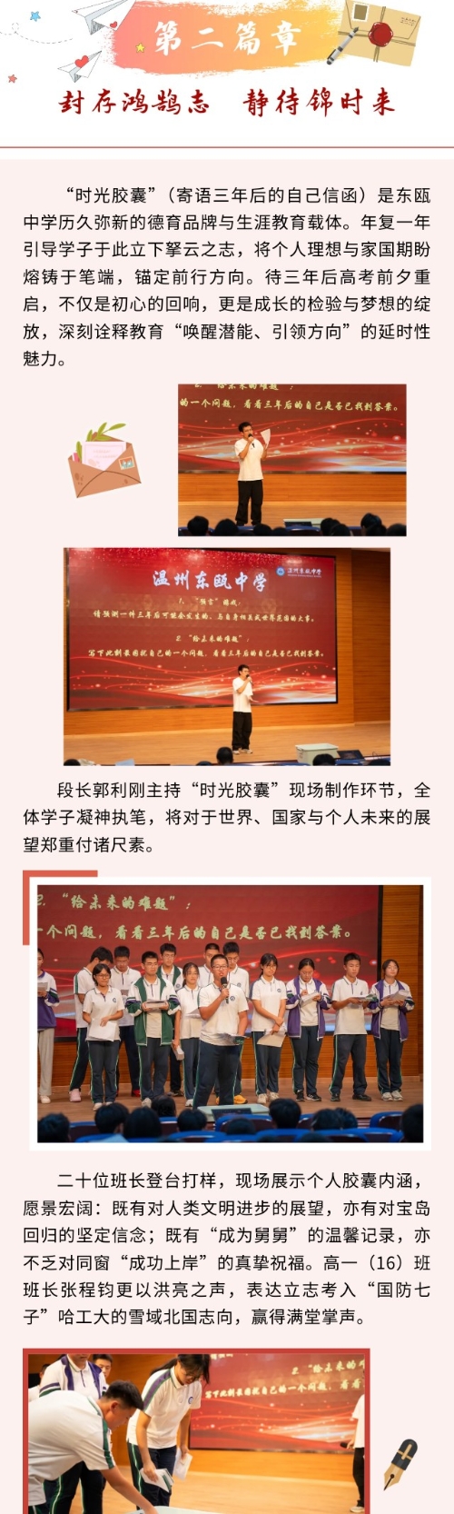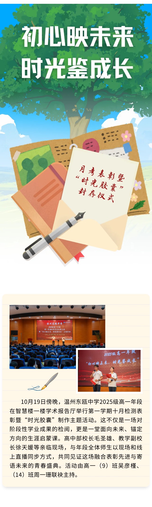 初心映未来 时光鉴成长 | 温州东瓯中学高一段举行月考表彰暨“时光胶囊”封存仪式
