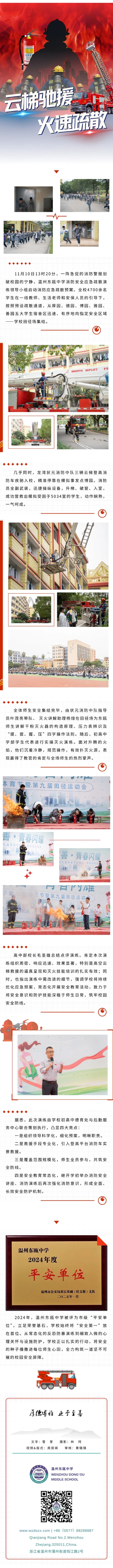 云梯驰援 火速疏散 | 温州东瓯中学举行大型消防应急演练