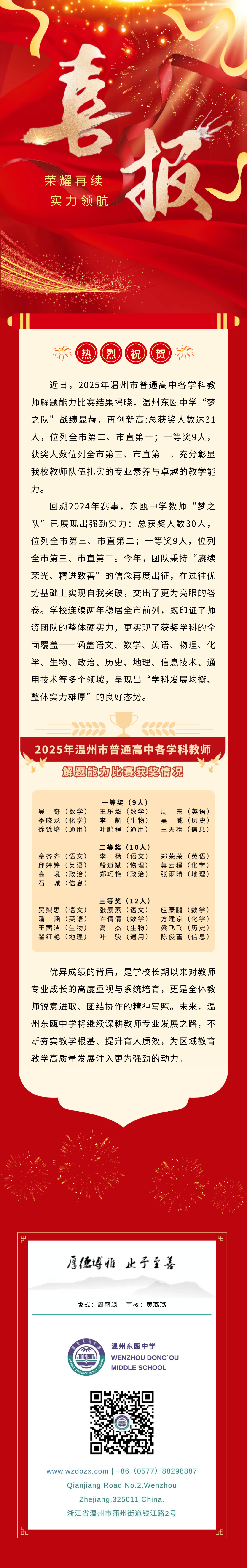 荣耀再续 实力领航 | 温州东瓯中学在温州市普通高中各学科教师解题能力比赛中再创佳绩