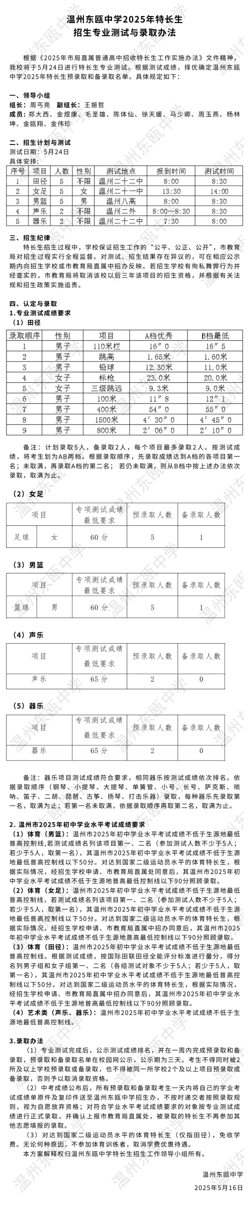 温州市直普高2025年特长生招生(田径)测试办法.doc