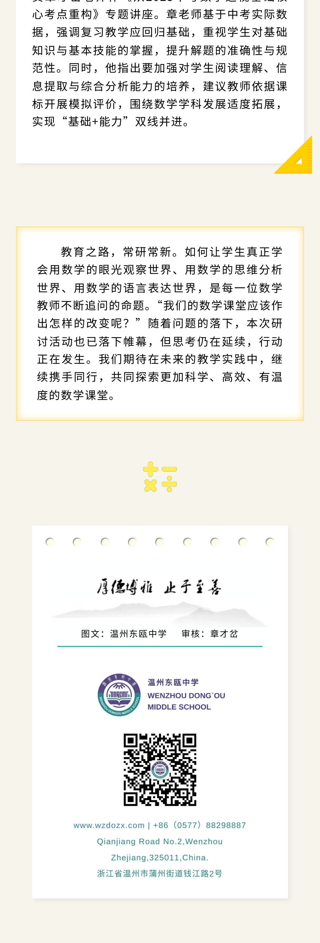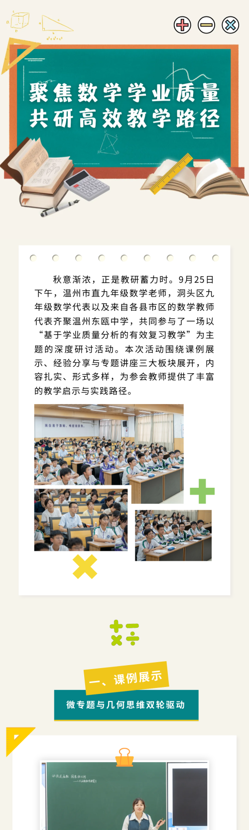 聚焦数学学业质量 共研高效教学路径 | 2025年“市直+洞头”九年级教学研讨活动在温州东瓯中学举行