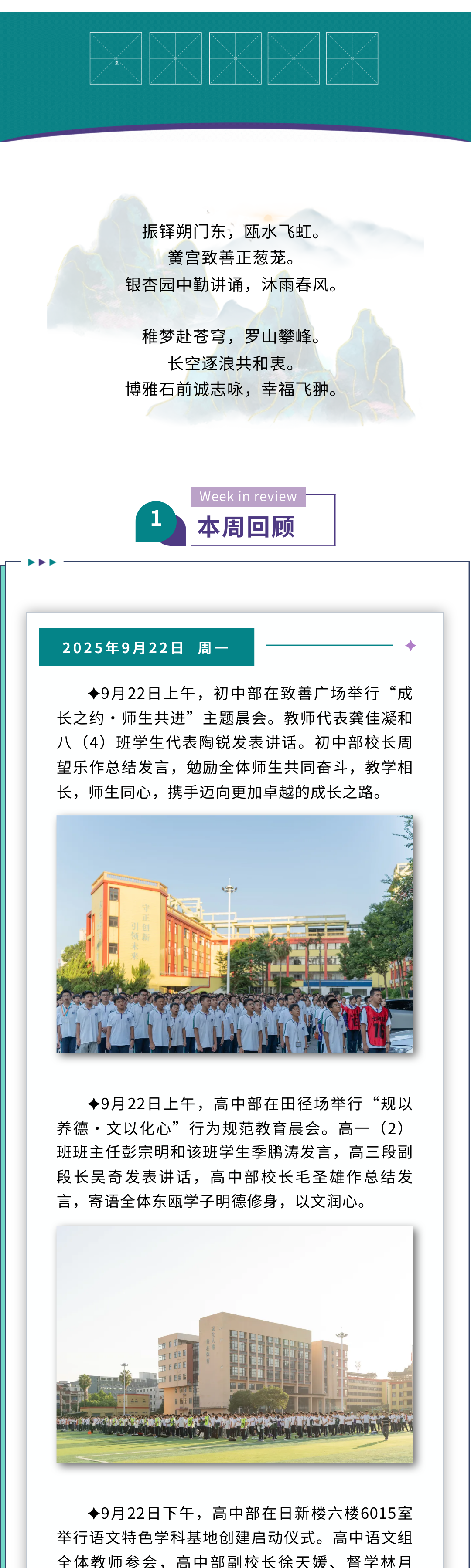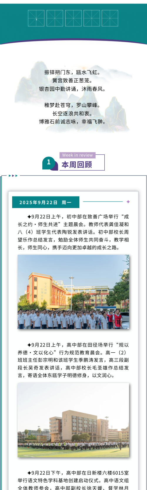 东瓯微周刊 | 温州东瓯中学2025学年第一学期第四周工作动态