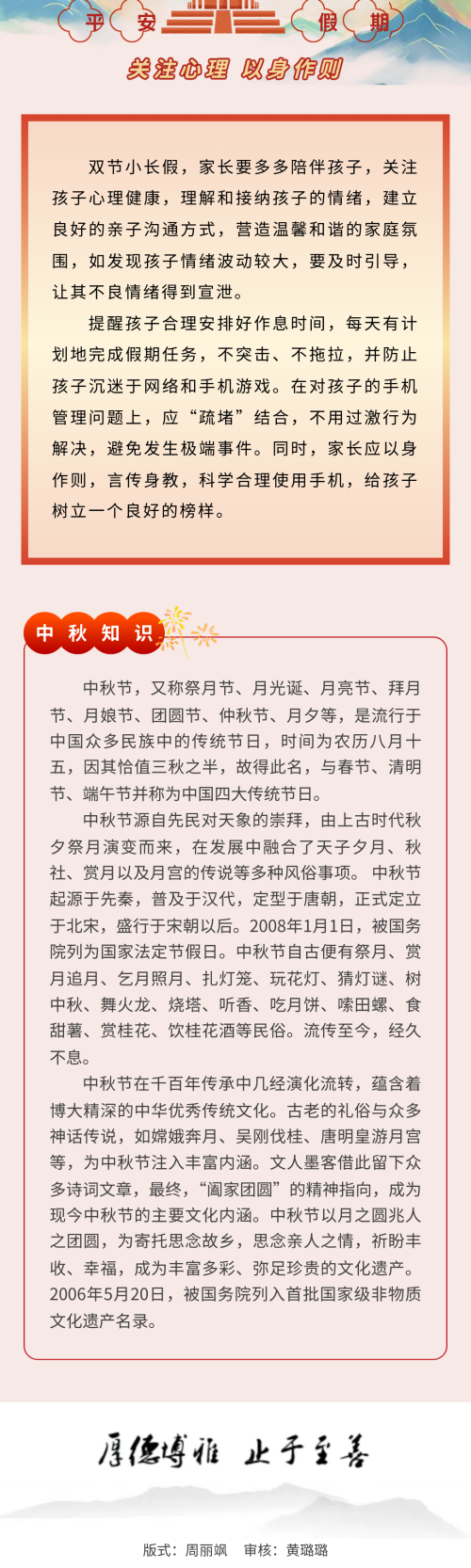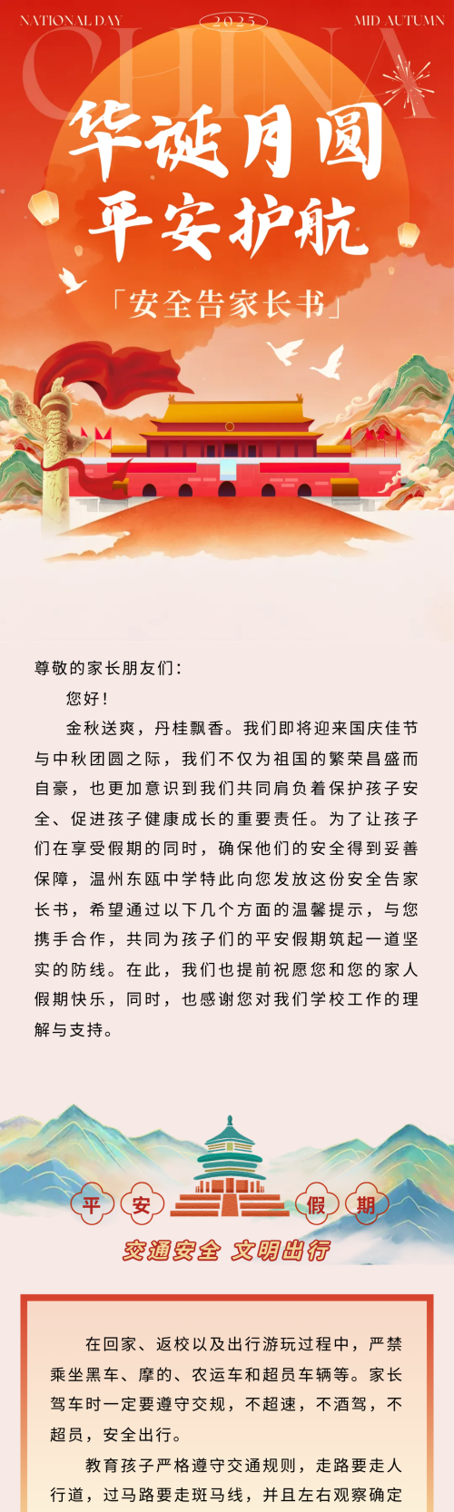 华诞月圆 平安护航 | 温州东瓯中学2025年国庆中秋双节假期安全告家长书