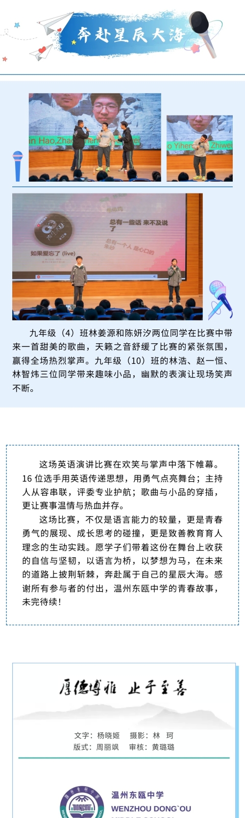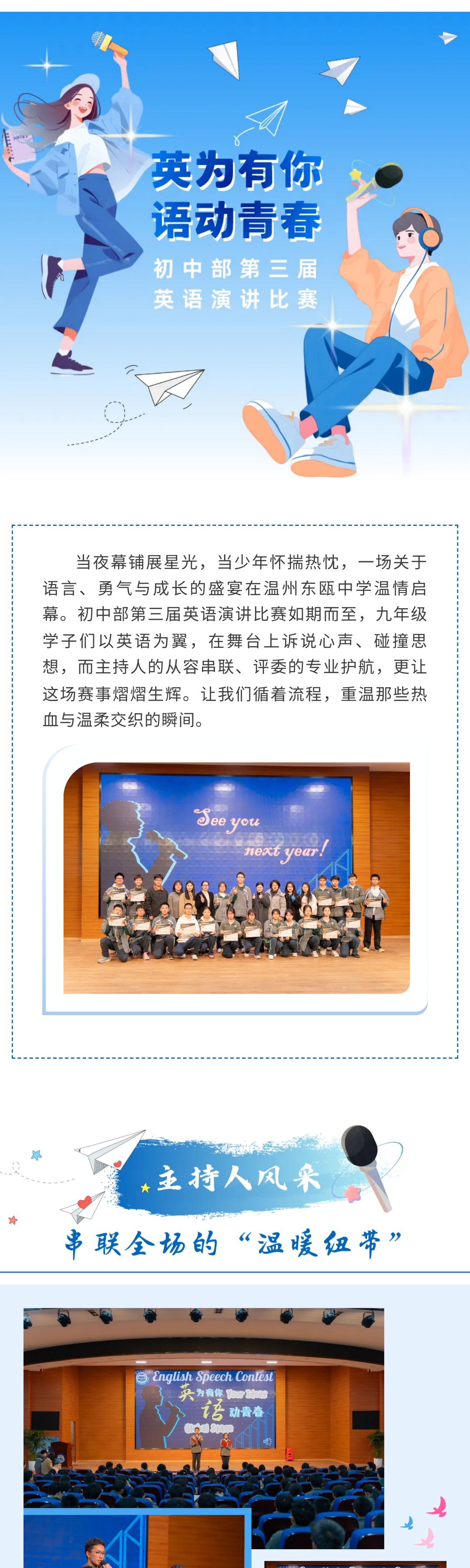 英为有你 语动青春 | 温州东瓯中学初中部第三届英语演讲比赛圆满落幕