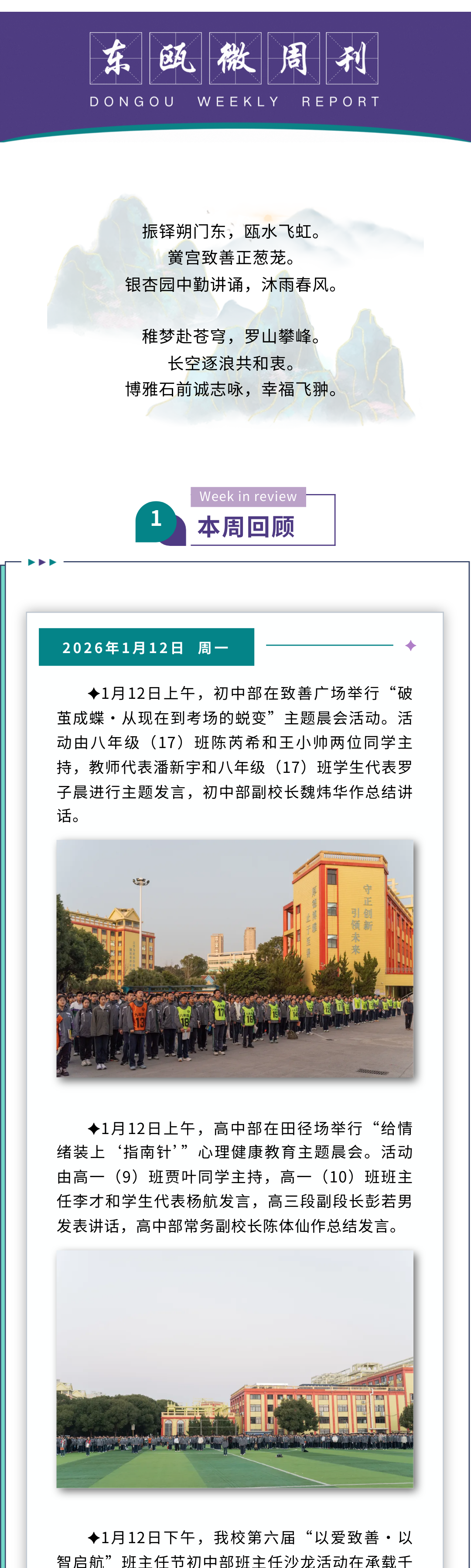 东瓯微周刊 | 温州东瓯中学2025学年第一学期第二十周工作动态