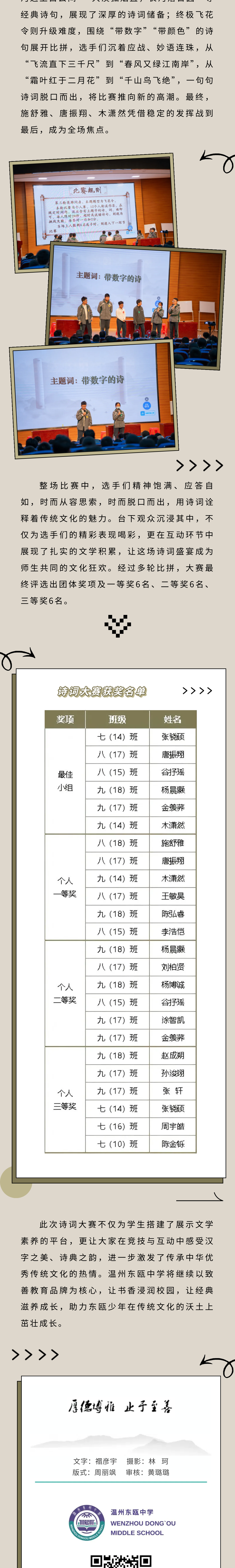 品汉字之韵 承诗典之华 | 温州东瓯中学第三届诗词大赛圆满落幕